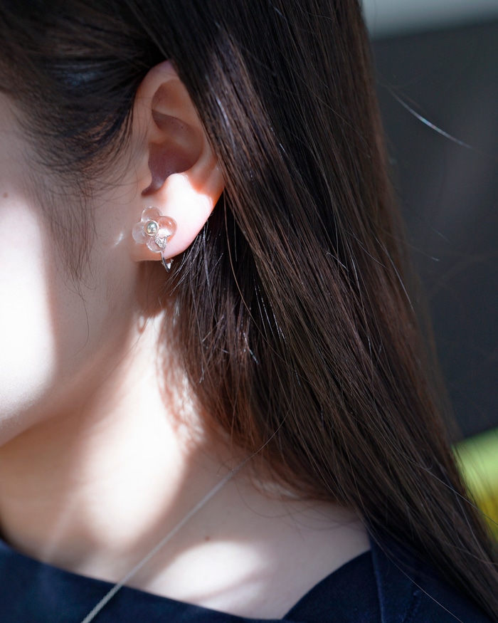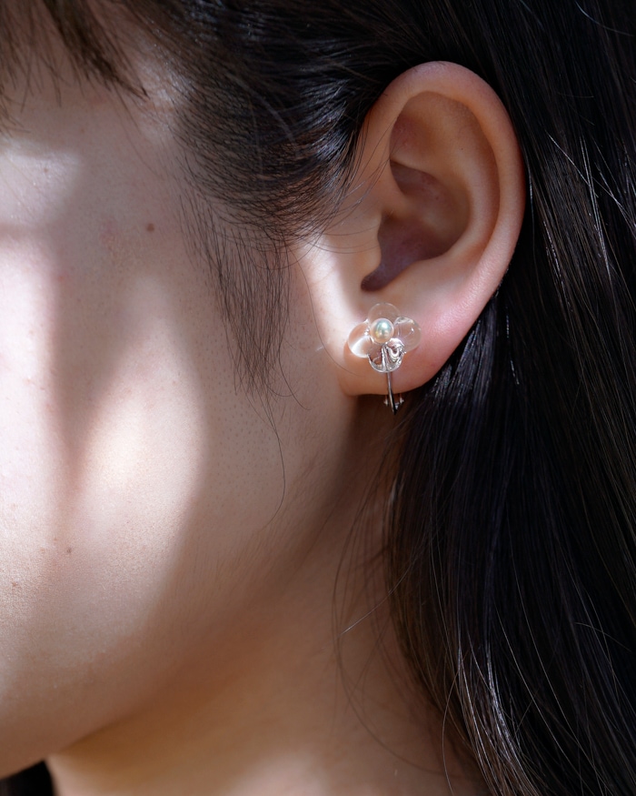 透明珍珠小花耳夾(Yashima珍珠)